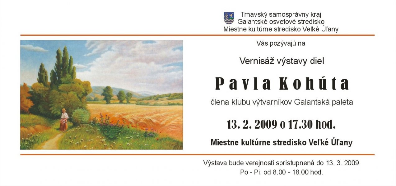 Galantské osvetové stredisko už niekoľko rokov umožňuje širokej verejnosti nahliadnuť do sveta výtvarného umenia prostredníctvom výstav diel členov Klubu výtvarníkov Galantská paleta...V dňoch 13.februára - 13.marca 2009 sa koná vo Veľkých ˇuľanoch výstavná prezentácia,na ktorej sa svojou tvorbou predstavuje Pavel Kohút z Galanty...